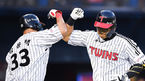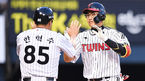 [OSEN=잠실, 이동해 기자] 22일 오후 서울 잠실야구장에서 열린 '2018 신한은행 MYCAR KBO리그' LG 트윈스와 롯데 자이언츠의 경기, 4회말 2사 1루 LG 채은성이 투런홈런을 뽑아낸 후 박용택과 기쁨을 나누고 있다. / eastsea@osen.co.kr