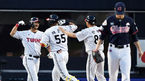 [OSEN=잠실, 박준형 기자] 22일 오후 서울 잠실야구장에서 열린 ‘2018 신한은행 MYCAR KBO리그’ LG 트윈스와 롯데 자이언츠의 경기,4회말 2사 1루 LG 채은성이 역전 2점 홈런을 날리고 동료들의 축하를 받고 있다. / soul1014@osen.co.kr