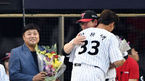 [OSEN=잠실, 이동해 기자] 23일 오후 서울 잠실야구장에서 '2018 신한은행 MYCAR KBO리그' LG 트윈스와 롯데 자이언츠의 경기가 열렸다.시상식에 앞서 박용택이 팬들에게 손인사를 하고 있다.박용택은 2319안타를 달성하며 KBO 최다안타