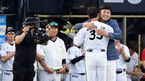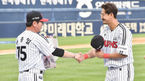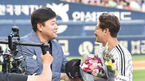 [OSEN=잠실, 이동해 기자] 23일 오후 서울 잠실야구장에서 '2018 신한은행 MYCAR KBO리그' LG 트윈스와 롯데 자이언츠의 경기가 열렸다.5회초 시작 전 열린 박용택의 KBO 최다안타 시상식에서 최다안타 기록 보유중이던 양준혁이 박용택