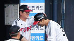 [OSEN=잠실, 이동해 기자] 23일 오후 서울 잠실야구장에서 열린 '2018 신한은행 MYCAR KBO리그' LG 트윈스와 롯데 자이언츠의 경기, ,4회말 1사 2루 LG 김현수의 적시타에 득점 성공한 박용택이 류중일 감독에게 축하를 받고 있다. 박용택