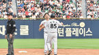 [OSEN=잠실, 박준형 기자] 23일 오후 서울 잠실야구장에서 열린 ‘2018 신한은행 MYCAR KBO리그’ LG 트윈스와 롯데 자이언츠의 경기. 4회말 1사 1,2루 LG 박용택이 동점 2타점 2루타를 날린뒤 한혁수 코치와 하이파이브를 하고 있다