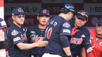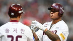 [OSEN=잠실, 박준형 기자] 23일 오후 서울 잠실야구장에서 열린 ‘2018 신한은행 MYCAR KBO리그’ LG 트윈스와 롯데 자이언츠의 경기,4회초 무사 1,2루 롯데 이대호가 3점 홈런을 날리고 조원우 감독의 축하를 받고 있다. / soul1014@o
