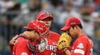 [OSEN=잠실, 이동해 기자] 23일 오후 서울 잠실야구장에서 열린 '2018 신한은행 MYCAR KBO리그' LG 트윈스와 롯데 자이언츠의 경기, ,4회말 1사 1,2루 LG 정주현에게 스리런 홈런 허용한 롯데 선발투수 노경은이 아쉬워 하고 있다. / eastsea@o