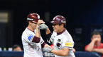 [OSEN=고척, 이대선 기자] 24일 오후 서울 고척스카이돔에서 ‘2018 신한은행 MYCAR KBO리그’ 넥센과 KIA의 경기가 열렸다.7회말 2사 1루에서 넥센 송성문이 우월 투런 홈런을 치고 홈에서 장영석의 축하를 받고 있다./sunday@osen.co
