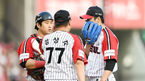[OSEN=잠실, 박재만 기자] 24일 오후 서울 잠실야구장에서 ‘2018 신한은행 MY CAR KBO리그’ LG와 롯데의 경기가 열렸다.8회초 2사 만루 LG 강상수 코치가 마운드를 찾아 차우찬을 격려하고 있다. /pjmpp@osen.co.kr