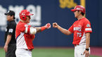 [OSEN=고척, 이대선 기자] 24일 오후 서울 고척스카이돔에서 ‘2018 신한은행 MYCAR KBO리그’ 넥센과 KIA의 경기가 열렸다.1회초 1사 3루에서 KIA 최형우가 중전 적시타를 치고 김민우 코치와 하이파이브를 하고 있다./sunday@osen.co.k