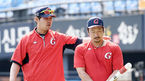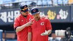[OSEN=잠실, 박재만 기자] 24일 오후 서울 잠실야구장에서 ‘2018 신한은행 MY CAR KBO리그’ LG와 롯데의 경기가 열린다.롯데 김승관 코치가 이병규를 격려하고 있다. /pjmpp@osen.co.kr