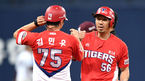 [OSEN=고척, 이대선 기자] 24일 오후 서울 고척스카이돔에서 ‘2018 신한은행 MYCAR KBO리그’ 넥센과 KIA의 경기가 열렸다.8회초 2사 만루에서 KIA 정성훈이 우월 3타점 적시 2루타를 치고 김민우 코치의 축하를 받고 있다./sunday@os