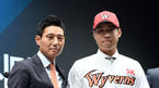 [OSEN=최규한 기자] 25일 오후 서울 소공동 웨스틴조선호텔에서 '2019 KBO 신인 1차 지명' 행사가 열렸다.SK 1차지명 인천고 백승건이 염경엽 단장과 포즈를 취하고 있다. /dreamer@osen.co.kr