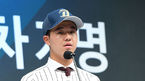 [OSEN=최규한 기자] 25일 오후 서울 소공동 웨스틴조선호텔에서 '2019 KBO 신인 1차 지명' 행사가 열렸다.NC 1차지명 마산용마고 박수현이 인사말을 전하고 있다. /dreamer@osen.co.kr