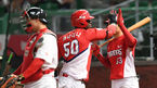[OSEN=인천, 최규한 기자] 27일 오후 인천 SK행복드림구장에서 '2018 신한은행 MY CAR KBO리그' SK 와이번스와 KIA 타이거즈의 경기가 열렸다.8회초 무사 선두타자로 나선 KIA 버나디나가 동점 솔로포를 날리고 홈을 밟으며 박준태와 인사