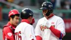 [OSEN=대전, 이동해 기자] 29일 오후 대전 한화생명이글스파크에서 '2018 신한은행 MY CAR KBO리그' 한화 이글스와 롯데 자이언츠의 경기가 열렸다.6회말 1사 1,2루 한화 지성준이 스리런 홈런을 때린 후 미소 짓고 있다. / eastsea@osen.co.kr
