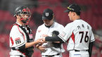 [OSEN=수원, 곽영래 기자] 29일 오후 경기도 수원 kt위즈파크에서 '2018 신한은행 MYCAR KBO리그' kt 위즈와 NC 다이노스의 경기가 열렸다.8회초 2사 1,2루 kt 윤근영이 강판되고 있다. / youngrae@osen.co.kr