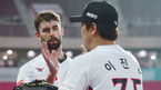 [OSEN=수원, 곽영래 기자] 29일 오후 경기도 수원 kt위즈파크에서 '2018 신한은행 MYCAR KBO리그' kt 위즈와 NC 다이노스의 경기가 열렸다.5회초 이닝을 마친 kt 니퍼트가 이진영과 하이파이브를 하고 있다. / youngrae@osen.co.kr