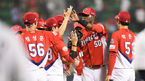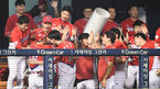 [OSEN=잠실,박준형 기자]29일 오후 서울 잠실구장에서 열린 '2018 신한은행 MY CAR KBO리그' 두산 베어스와 KIA 타이거즈의 경기, 연장 10회초 1사 2루 KIA 최원준의 1타점 2루타때 홈을 밟은 정성훈이 동료들과 하이파이브를 하고 있다. / s