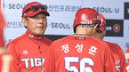 [OSEN=잠실,박준형 기자]29일 오후 서울 잠실구장에서 열린 '2018 신한은행 MY CAR KBO리그' 두산 베어스와 KIA 타이거즈의 경기, 연장 10회초 1사 2루 KIA 최원준의 1타점 2루타때 홈을 밟은 정성훈이 김기태 감독과 하이파이브를 하고 있