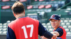 [OSEN=대전, 이동해 기자] 29일 오후 대전 한화생명이글스파크에서 열릴 예정인 '2018 신한은행 MY CAR KBO리그' 한화 이글스와 롯데 자이언츠의 경기에 앞서 롯데 조원우 감독이 채태인을 바라보며 미소 짓고 있다. / eastsea@osen.co.kr