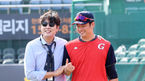 [OSEN=대전, 이동해 기자] 29일 오후 대전 한화생명이글스파크에서 열릴 예정인 '2018 신한은행 MY CAR KBO리그' 한화 이글스와 롯데 자이언츠의 경기에 앞서 정민철 해설위원이 롯데 송승준과 인사를 나누고 있다. / eastsea@osen.co.kr