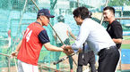 [OSEN=대전, 이동해 기자] 29일 오후 대전 한화생명이글스파크에서 열릴 예정인 '2018 신한은행 MY CAR KBO리그' 한화 이글스와 롯데 자이언츠의 경기에 앞서 롯데 조원우 감독이 정민철 해설위원과 악수를 나누고 있다. / eastsea@osen.co.k