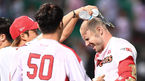 [OSEN=인천, 김태우 기자] 제이미 로맥(SK)의 힘이 끝내기 승리를 만들어냈다.로맥은 30일 인천SK행복드림구장에서 열린 LG와의 경기에서 3-3으로 맞선 9회 1사 1,2루에서 LG 마무리 정찬헌을 상대로 우측 담장을 살짝 넘기는 끝내기 3