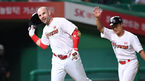[OSEN=잠실, 민경훈 기자] 30일 오후 서울 잠실구장에서 열린 '2018 신한은행 MY CAR KBO 리그' 두산 베어스와 KIA 타이거즈의 경기, 8회초 2사 주자 1루 KIA 류승현이 우중월 투런 홈런을 날린 후 덕아웃에서 김기태 감독과 하이파이브를