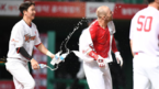 [OSEN=대전, 이동해 기자] 30일 오후 대전 한화생명이글스파크에서 '2018 신한은행 MY CAR KBO리그' 한화 이글스와 롯데 자이언츠의 경기가 열렸다.시타에 나선 이준익 감독이 한화 포수 지성준에게 미소 짓고 있다. 시구는 배우 박정