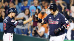 [OSEN=대전, 이동해 기자] 30일 오후 대전 한화생명이글스파크에서 '2018 신한은행 MY CAR KBO리그' 한화 이글스와 롯데 자이언츠의 경기가 열렸다.8회초 2사 1루 롯데 이대호가 투런홈런을 떄린 후 채태인과 하이파이브를 하고 있다. /