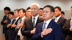[OSEN=최규한 기자] 2일 오전 서울 논현동 KBL센터에서 '제9대 KBL 총재 취임식'이 열렸다.이정대 새 총재를 비롯한 임원진이 국민 의례를 하고 있다. /dreamer@osen.co.kr