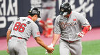 [OSEN=고척, 박준형 기자] 3일 오후 서울 고척스카이돔에서 진행된 '2018 신한은행 MY CAR KBO리그' 넥센 히어로즈와 SK 와이번스의 경기, 5회초 1사 SK 최정이 백투백 홈런을 날리고 홈을 밟고 있다. / soul1014@osen.co.kr