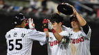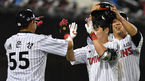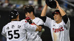 [OSEN=잠실, 최규한 기자] 4일 오후 서울 잠실야구장에서 '2018 신한은행 MY CAR KBO리그' LG 트윈스와 NC 다이노스의 경기가 열렸다.6회말 무사 1, 2루 상황 LG 양석환이 달아나는 스리런포를 날리고 홈을 밟은 뒤 김현수-채은성의 축하를