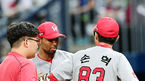 [OSEN=고척, 민경훈 기자] 4일 오후 서울 고척스카이돔서 열린 '2018 신한은행 MY CAR KBO 리그' 넥센 히어로즈와 SK 와이번스의 경기, 5회말 1사 주자 2루 SK 이택근의 중견수 앞 1타점 적시타를 허용한 SK 선발 산체스가 손혁 코치와 얘