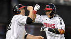 [OSEN=잠실, 최규한 기자] 4일 오후 서울 잠실야구장에서 '2018 신한은행 MY CAR KBO리그' LG 트윈스와 NC 다이노스의 경기가 열렸다.4회말 2사 1, 2루 상황 LG 채은성이 달아나는 좌월 스리런포를 날리고 홈을 밟은 뒤 김현수와 기뻐하고