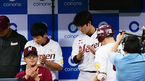 [OSEN=고척, 민경훈 기자] 4일 오후 서울 고척스카이돔서 열린 '2018 신한은행 MY CAR KBO 리그' 넥센 히어로즈와 SK 와이번스의 경기, 1회말 2사 넥센 이택근이 우월 선취 솔로 홈런을 날린 후 덕아웃에서 장정석 감독의 박수를 받고 있