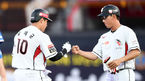 [OSEN=수원, 이대선 기자] 4일 오후 수원kt위즈파크에서 ‘2018 신한은행 MYCAR KBO리그’ kt와 삼성의 경기가 열렸다.2회말 1사에서 kt 황재균이 좌중간 2루타를 치고 고영민 코치와 하이파이브를 하고 있다. 황재균은 역대 36번