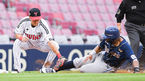 [OSEN=박준형 기자]5일 오후 서울 잠실구장에서 열린 '2018 신한은행 MY CAR KBO리그' LG 트윈스와 NC 다이노스의 경기, 2회초 무사 2루 NC 김성욱의 내야땅볼 타구때 2루 주자 스크럭스가 3루에서 태그아웃되고 있다. / soul1014@osen.co.kr