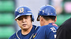 [OSEN=박준형 기자]5일 오후 서울 잠실구장에서 열린 '2018 신한은행 MY CAR KBO리그' LG 트윈스와 NC 다이노스의 경기, 2회초 1사 1,2루 NC 권희동이 선취 1타점 2루타를 날린뒤 전준호 1루 코치와 하이파이브를 하고 있다. / soul1014@osen.co.kr