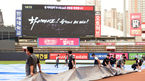 [OSEN=수원, 이대선 기자] 5일 오후 수원kt위즈파크에서 열릴 ‘2018 신한은행 MYCAR KBO리그’ kt와 삼성의 경기에 앞서 경기장 요원들이 그라운드에 덮어뒀던 방수포를 걷고 있다./sunday@osen.co.kr