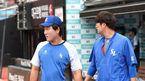 [OSEN=수원, 이대선 기자] 5일 오후 수원kt위즈파크에서 열릴 ‘2018 신한은행 MYCAR KBO리그’ kt와 삼성의 경기에 앞서 삼성 배영섭과 한기주가 훈련을 위해 그라운드로 나가고 있다./sunday@osen.co.kr