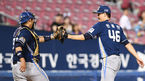 [OSEN=잠실,박준형 기자]5일 오후 서울 잠실구장에서 열린 '2018 신한은행 MY CAR KBO리그' LG 트윈스와 NC 다이노스의 경기,7회말 이닝종료 후 NC 원종현 투수와 윤수강 포수가 하이파이브를 하며 더그아웃으로 들어가고 있다. / soul1014@o