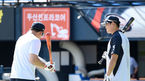 [OSEN=잠실, 이대선 기자] 6일 오후 서울 잠실야구장에서 열릴 ‘2018 신한은행 MYCAR KBO리그’ 두산과 삼성의 경기에 앞서 두산 조성환 코치와 삼성 이원석이 인사를 나누고 있다./sunday@osen.co.kr