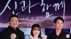 [OSEN=민경훈 기자] 6일 오후 서울 광진구 자양동 건대입구 롯데시네마서 진행된 영화 '신과 함께' 제작보고회에서 배우 마동석 김향기 김동욱 포토타임을갖고 있다./ rumi@osen.co.kr