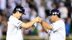 [OSEN=잠실, 이대선 기자] 7일 오후 서울 잠실야구장에서 ‘2018 신한은행 MYCAR KBO리그’ 두산과 삼성의 경기가 열렸다.7회말 2사 만루에서 두산 박건우가 우중간 3타점 적시 2루타를 치고 김태균 코치의 축하를 받고 있다./sund