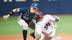 [OSEN=잠실, 이대선 기자] 8일 오후 서울 잠실야구장에서 ‘2018 신한은행 MYCAR KBO리그’ 두산과 삼성의 경기가 열렸다.2회말 1사 1,2루에서 두산 정진호의 내야땅볼때 1루주자 반슬라이크가 포스아웃되고 있다./sunday@osen.co.kr