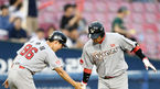 [OSEN=잠실, 박재만 기자] 10일 오후 서울 잠실야구장에서 ‘2018 신한은행 MY CAR KBO리그’ LG와 SK의 경기가 열렸다.2회초 1사 1,2루 SK 김강민이 우월 3점 홈런을 날린 뒤 박재상 코치와 하이파이브를 하고 있다. /pjmpp@osen.co.kr