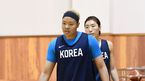 [OSEN=진천, 이대선 기자] 10일 오후 충북 진천 국가대표선수촌에서 ‘2018 자카르타-팔렘방 아시안게임 미디어데이’가 열렸다.농구 김한별과 임영희가 훈련을 하고 있다./sunday@osen.co.kr