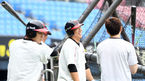 [OSEN=잠실, 박재만 기자] 10일 오후 서울 잠실야구장에서 ‘2018 신한은행 MY CAR KBO리그’ LG와 SK의 경기가 열린다.LG 김현수가 배팅 연습 전 선수들과 대화를 나누며 미소 짓고 있다. /pjmpp@osen.co.kr