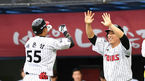 [OSEN=잠실, 최규한 기자] 11일 오후 서울 잠실야구장에서 '2018 신한은행 MY CAR KBO 리그' LG 트윈스와 SK 와이번스의 경기가 열렸다.2회말 무사 1루 상황 LG 채은성이 선제 좌월 투런포를 날리고 김현수와 기뻐하고 있다. /dreamer@osen.co.kr