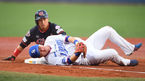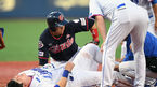 [OSEN=포항, 곽영래 기자] 12일 오후 경북 포항구장에서 '2018 신한은행 MY CAR KBO리그' 삼성 라이온즈와 롯데 자이언츠의 경기가 열렸다.3회초 1사 1루 삼성 이원석이 롯데 채태인의 우전 안타때 3루까지 진루하려던 손아섭과 충돌한