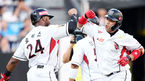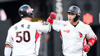 [OSEN=수원, 이동해 기자] 12일 오후 경기도 수원kt위즈파크에서 열린 '2018 신한은행 MYCAR KBO리그' kt 위즈와 두산 베어스의 경기, 2회말 2사 만루 kt 박경수가 만루홈런을 쏘아 올린 후 강백호와 기쁨을 나누고 있다. / eastsea@osen.co.kr